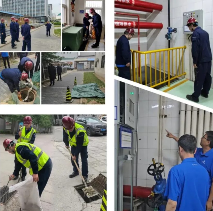 對在京園區(qū)的動力站、變電站、公共食堂、地下空間、施工工地等重點防汛部位和人員密集場所進行隱患排查,增加沙袋沙箱和抽水泵配備數(shù)量,完善防雨水倒灌措施。