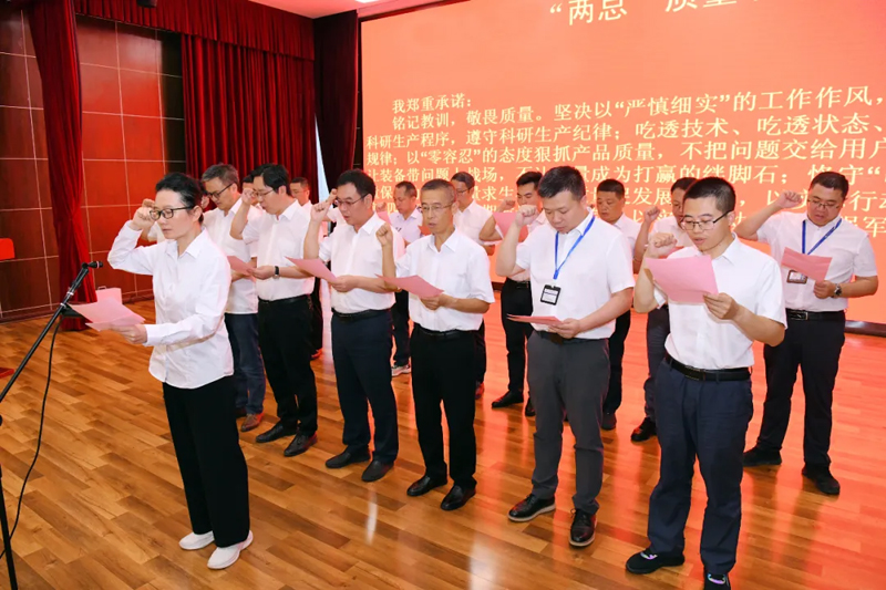會議強調(diào),各級黨委(黨組織)、各單位主要領(lǐng)導(dǎo)、各黨支部、廣大黨員干部要堅決響應(yīng)質(zhì)量倡議書號召,帶頭打好新時期裝備質(zhì)量攻堅戰(zhàn),并從四個方面提出了工作要求:一是全體員工要形成“質(zhì)量過硬是履行強軍首責(zé)的基本要求”的共識,站穩(wěn)工作立場,從政治高度從嚴(yán)從實深化中央巡視問題整改工作。二是兩級黨委要堅決扛起質(zhì)量至上的旗幟,堅持質(zhì)量興院、誠信強院,清楚準(zhǔn)確理解裝備質(zhì)量的定位,切實提高對質(zhì)量的重視和敬畏,牢固樹立“零缺陷”質(zhì)量意識和“沒有質(zhì)量的交付是一場災(zāi)難”的理念,集中力量攻克難關(guān)。三是要牢固樹立決不向違反質(zhì)量紀(jì)律、破壞質(zhì)量規(guī)矩的行為讓步的決心,較真碰硬,鐵腕抓質(zhì)量,堅決打贏質(zhì)量提升攻堅戰(zhàn)。四是要堅持質(zhì)量興院、誠信強院,加快形成有利于人才成長的培養(yǎng)機制,錨定打造讓黨中央、集團公司黨組、用戶放心的十院品牌目標(biāo),一以貫之做強主業(yè)。