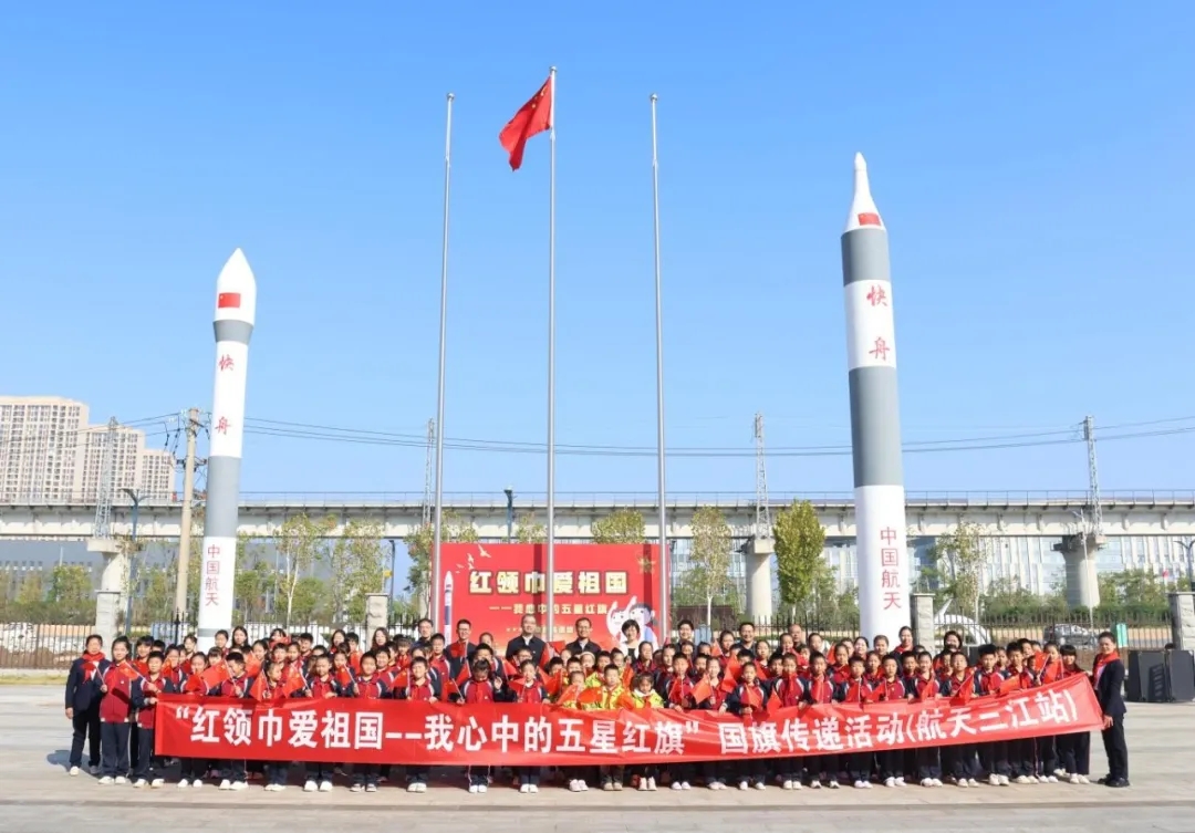 10月23日,由全國少工委聯(lián)合中國載人航天工程新聞宣傳辦公室舉辦的“紅領巾愛祖國——我心中的五星紅旗”國旗傳遞活動,在湖北武漢國家航天產業(yè)基地快舟火箭產業(yè)園舉行。共青團湖北省委領導、湖北省少工委、共青團武漢市委、武漢市新洲區(qū)、航天科工九院及所屬火箭公司等相關負責同志及代表,武漢市新洲區(qū)雙柳街中心小學、武漢市十一實驗學校少先隊員、少先隊輔導員代表,共計100余人參加活動。