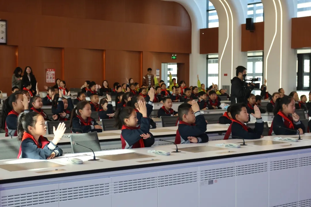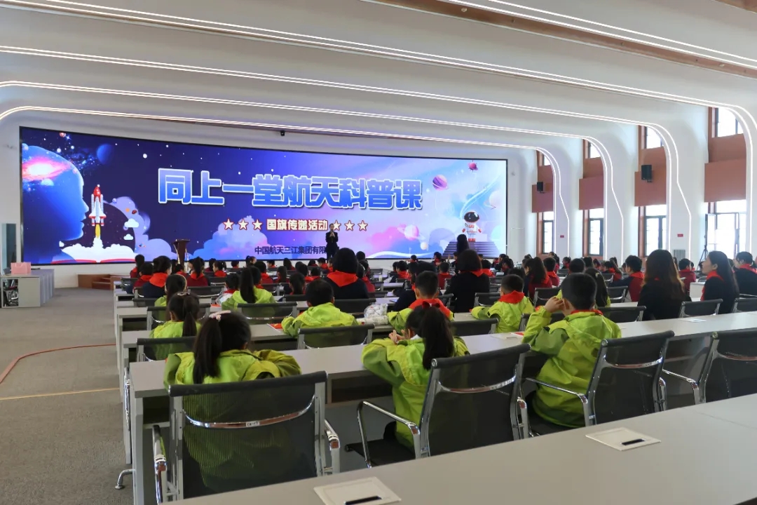 升旗儀式結束后,來自火箭公司的青年科技工作者唐詩,為少先隊員們上了一堂科普課,從載人航天和可回收火箭等最為好奇的熱門話題引入,講解了快舟火箭的誕生和發(fā)展,介紹了東方紅、北斗、嫦娥、天宮等國家重大航天項目,生動點亮了少年們的航天夢。圍繞“紅領巾愛祖國”主題,少先隊們員現(xiàn)場進行熱烈互動和交流。