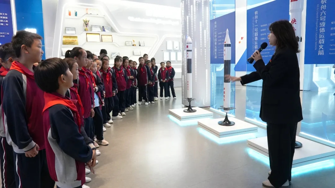 隨后,少先隊員們與快舟固體運載火箭親密接觸,現(xiàn)場參觀,并到火箭公司科普展廳開展見學,豐富翔實的圖文資料、視頻動畫、快舟系列火箭模型等,展示了中國航天事業(yè)的輝煌成就、快舟火箭的發(fā)展歷程,以及人類對未來太空探索的夢想。少先隊員們駐足觀看,不時向身邊的講解員發(fā)問,對中國航天抱有極大興趣。