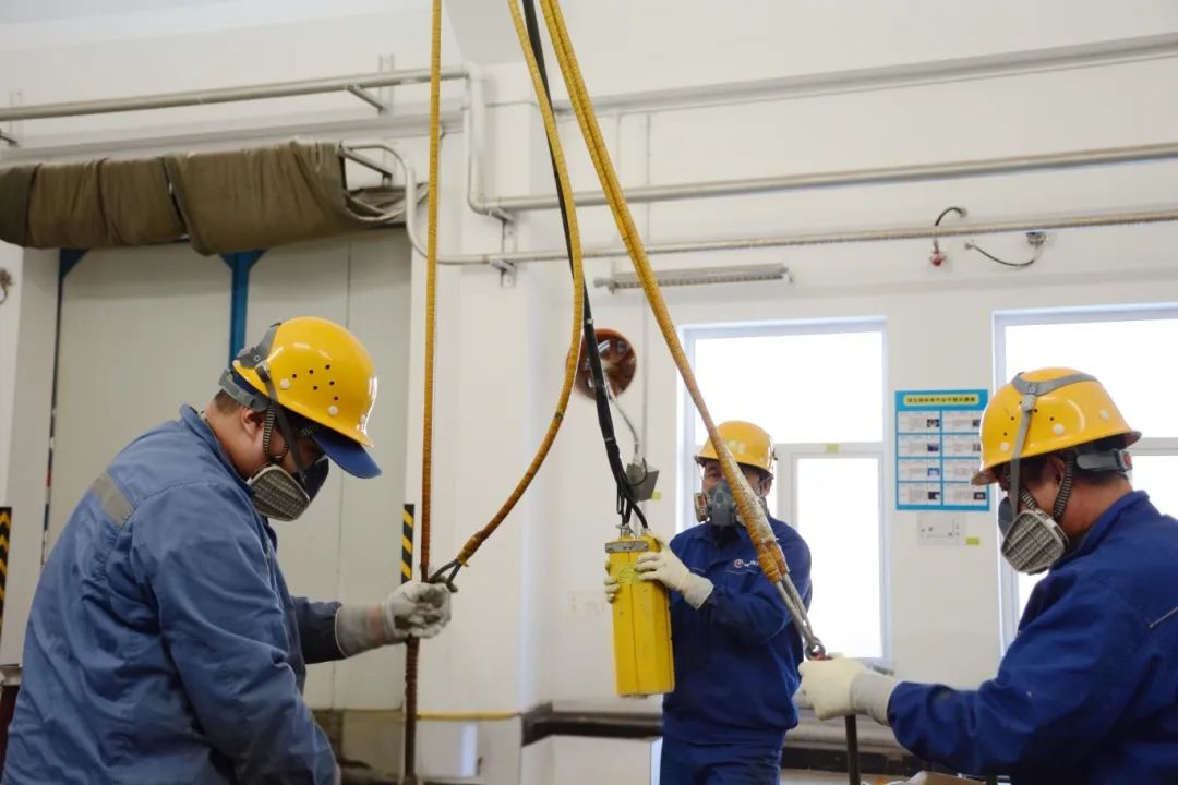 紅峽公司二車間一線職工緊密配合,將沉重的設(shè)備部件平穩(wěn)吊起并準(zhǔn)確放置到指定位置,確保及時轉(zhuǎn)運(yùn)到下一道工序。