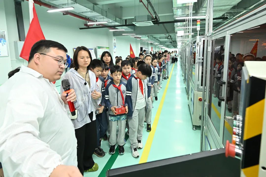 現(xiàn)場科普結(jié)束后,學(xué)生們依次進入十院航天電器麻花針智能制造車間參觀。