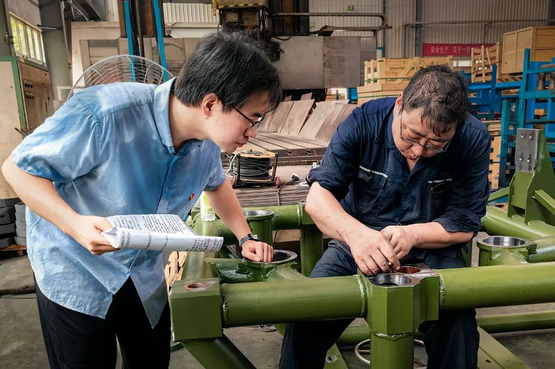 暑氣蒸騰,車間如爐。萬山公司車間里,年輕的技術(shù)員俯身與操作者在操作現(xiàn)場共商方案,滾落的汗珠浸透工裝,勾勒出他們專注的身影。(圖文/王小芳 劉澤華)