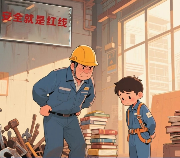 錢師傅的嗓門穿透廠房。當(dāng)看到新來(lái)的徒弟小員為圖方便不系安全帶就要上梯子,眼疾手快的錢師傅一下就把他“拎”回安全區(qū),罰抄《安全操作手冊(cè)》三遍。在學(xué)習(xí)中,安全教育培訓(xùn)視頻里高處墜落事故的場(chǎng)景,讓小員驚出一身冷汗。他很快就懂了錢師傅的苦心,也理解了那些反復(fù)叮囑背后的深意。