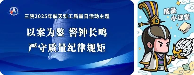 按照集團公司部署安排,航天三院周密策劃,專題制定《關于開展2025年航天科工質(zhì)量日系列活動的通知》,精心組織院屬各單位開展了以“以案為鑒,警鐘長鳴,嚴守質(zhì)量紀律規(guī)矩”為主題的航天科工質(zhì)量日系列活動。