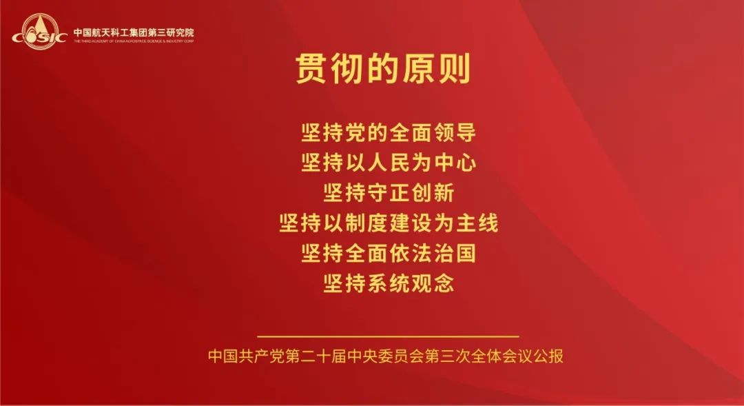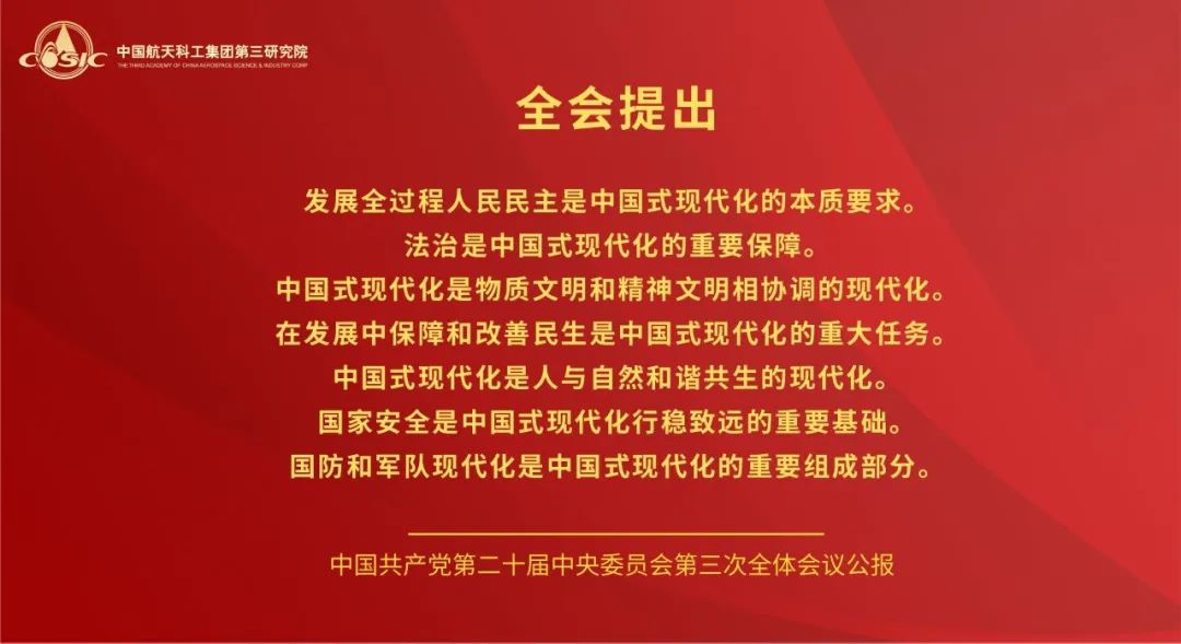 黨的二十屆三中全會(huì),是在以中國式現(xiàn)代化全面推進(jìn)強(qiáng)國建設(shè)、民族復(fù)興偉業(yè)的關(guān)鍵時(shí)期召開的一次十分重要的會(huì)議。航天三院黨委將學(xué)習(xí)好宣傳好貫徹好黨的二十屆三中全會(huì)精神作為當(dāng)前和今后一個(gè)時(shí)期的一項(xiàng)重大政治任務(wù),高度重視,迅速行動(dòng),引導(dǎo)三院全體黨員干部職工把思想和行動(dòng)統(tǒng)一到全會(huì)精神上來,把智慧和力量凝聚到落實(shí)全會(huì)精神和部署上來,聚焦主責(zé)主業(yè),履行強(qiáng)軍首責(zé),持續(xù)推動(dòng)飛航事業(yè)高質(zhì)量發(fā)展。