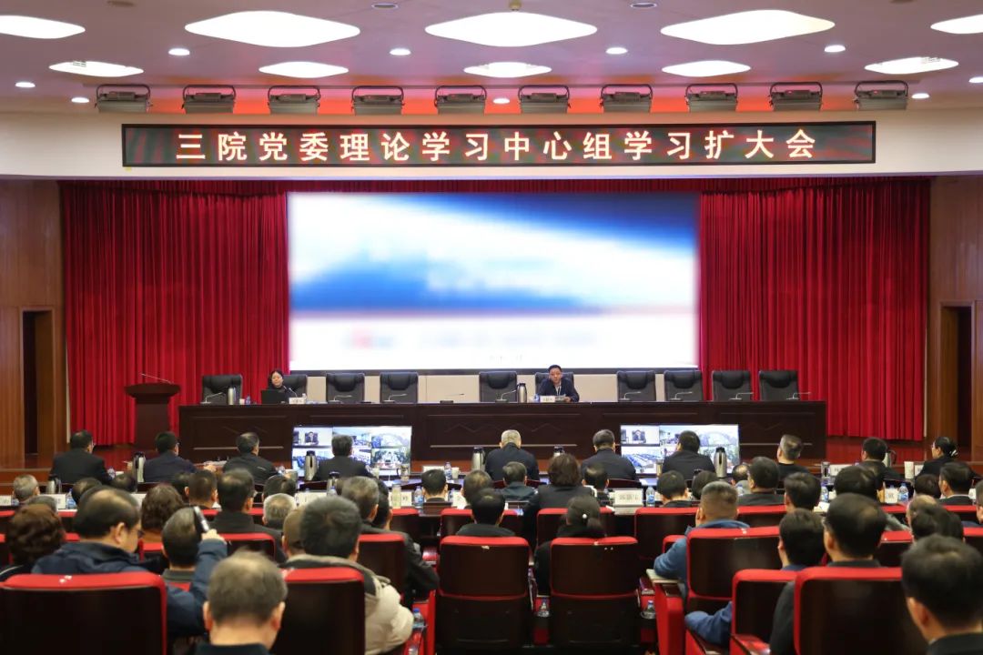 三院全體在家院領(lǐng)導(dǎo)、型號(hào)“兩總”、本部各部門負(fù)責(zé)人,院屬各單位黨政主要領(lǐng)導(dǎo),部分單位領(lǐng)導(dǎo)班子成員、本部相關(guān)部門負(fù)責(zé)人等共400余人在主會(huì)場(chǎng)和視頻分會(huì)場(chǎng)參加了學(xué)習(xí)。三院黨委書(shū)記施毅、副院長(zhǎng)(主持工作)程進(jìn)分別主持黨委理論中心組學(xué)習(xí)擴(kuò)大會(huì)、宣講培訓(xùn)并講話。