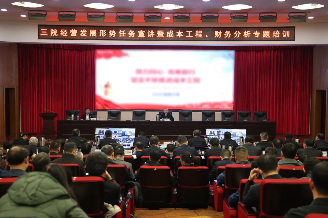 總會(huì)計(jì)師王大偉圍繞“從財(cái)務(wù)報(bào)表客觀認(rèn)識(shí)當(dāng)前經(jīng)營(yíng)之‘道’、從思想認(rèn)識(shí)切實(shí)扭轉(zhuǎn)傳統(tǒng)思維之‘變’、從自我革新全面把握發(fā)展三院發(fā)展之‘機(jī)’”三個(gè)方面內(nèi)容,對(duì)當(dāng)前經(jīng)營(yíng)形勢(shì)進(jìn)行深入分析,闡述了如何提升經(jīng)營(yíng)意識(shí)、樹(shù)立財(cái)務(wù)思維,運(yùn)用財(cái)務(wù)分析提升企業(yè)經(jīng)營(yíng)質(zhì)量及現(xiàn)代治理能力。