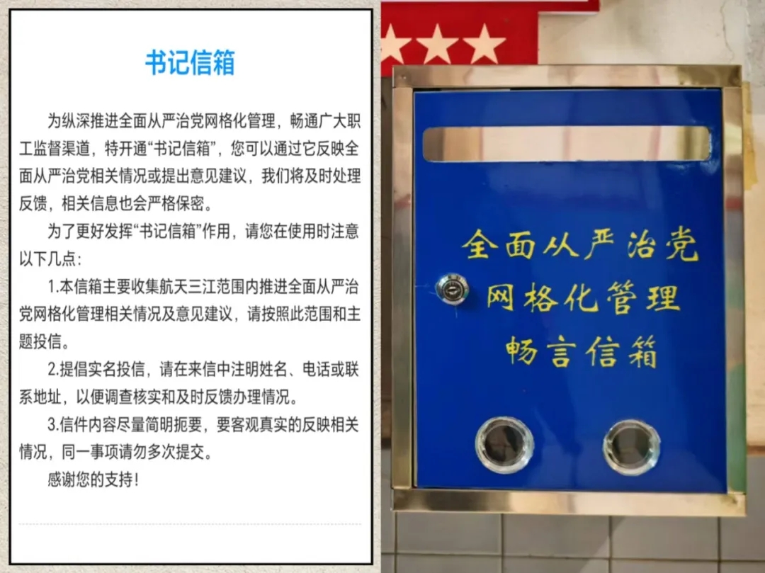 學(xué)習(xí)教育開(kāi)展以來(lái),航天三江黨委領(lǐng)導(dǎo)帶頭深入基層開(kāi)展調(diào)研座談,建好用好線上“書(shū)記信箱”“暢言郵箱”和線下“專用信箱”,建立健全黨建工作評(píng)審、黨建工作聯(lián)系點(diǎn)等多項(xiàng)工作機(jī)制,充分發(fā)揮黨支部、黨小組“探頭”、“前哨”作用,廣泛征求職工群眾意見(jiàn)建議。