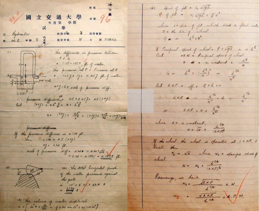 錢學(xué)森在機(jī)械系讀三年級(jí)時(shí),金愨(què)教授為他們講授水力學(xué)課程。臨近期末,金教授組織了水力學(xué)考試。