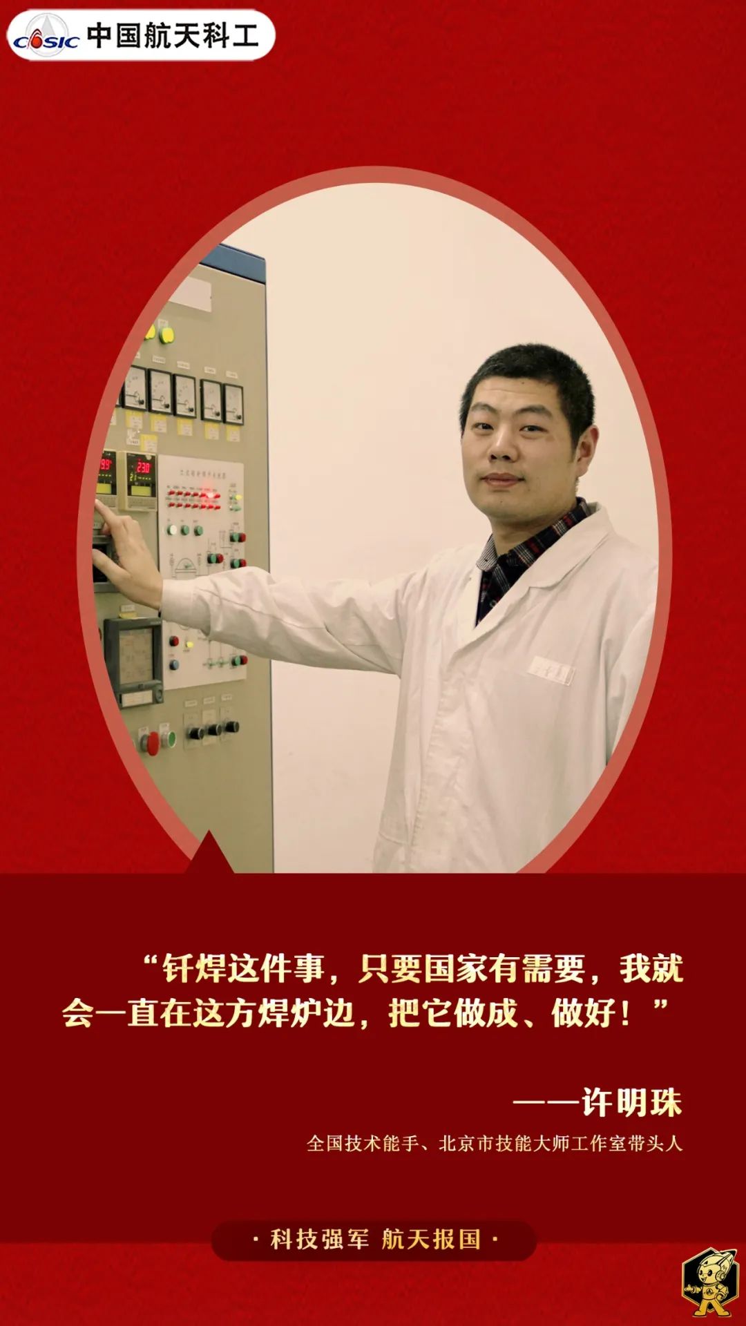 “國(guó)家有需要,我一定要做成、做好?!边@是許明珠從業(yè)24年踐行的諾言,也是他對(duì)工匠精神的生動(dòng)詮釋。從少年到匠人,從學(xué)徒到大師,許明珠用執(zhí)著和堅(jiān)韌打造釬焊產(chǎn)品,他深諳釬焊之道:將自己的青春“熔”進(jìn)工藝并化身為最好的釬料,與祖國(guó)航天事業(yè)緊緊焊在一起。