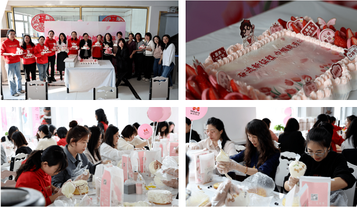 院本部的女職工們化身甜品大師,發(fā)揮自己的想象力與創(chuàng)造力,抹奶油、裱花裝飾、、擺放水果,全身心投入,制作出屬于自己獨(dú)一無二的蛋糕。