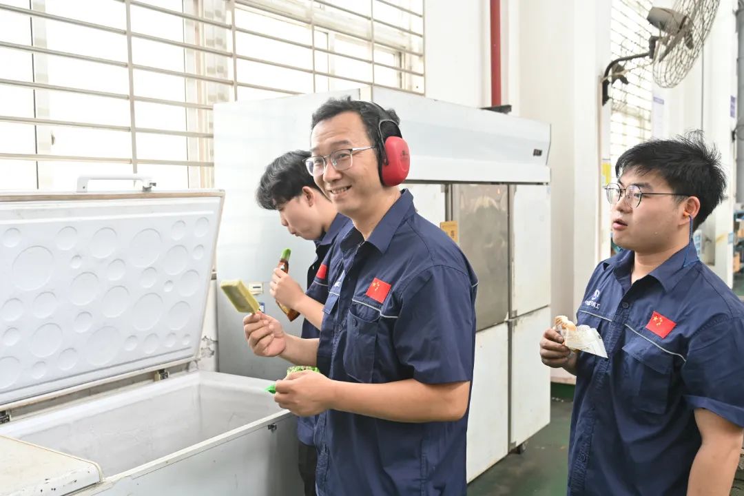 高輝文一行現(xiàn)場(chǎng)詢問(wèn)各項(xiàng)試驗(yàn)開展情況,詳細(xì)了解各項(xiàng)任務(wù)進(jìn)展和后續(xù)工作計(jì)劃,與項(xiàng)目負(fù)責(zé)人和作業(yè)人員進(jìn)行交流,對(duì)產(chǎn)品設(shè)計(jì)和工藝提出優(yōu)化建議。在試驗(yàn)廠房,高輝文親切詢問(wèn)技能人員高溫天氣下的作業(yè)情況,囑咐大家做好個(gè)人防護(hù),并送上防暑降溫物資。(圖文/唐詩(shī))