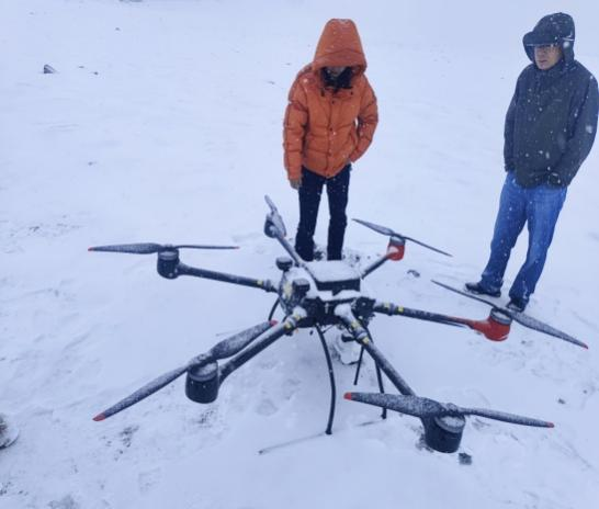 雪地強(qiáng)烈的反光讓人睜不開眼,但隊員們強(qiáng)忍不適,全神貫注地盯著監(jiān)視屏幕。無人機(jī)在凜冽的寒風(fēng)中艱難盤旋,載荷設(shè)備卻精準(zhǔn)地捕捉著每一寸雪景。經(jīng)過多次調(diào)試,團(tuán)隊終于獲得了高質(zhì)量的數(shù)據(jù)。直到收拾設(shè)備時,處于注意力高度緊繃的他們才發(fā)現(xiàn)高原反應(yīng)已經(jīng)悄然來襲。